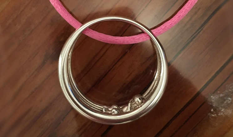 Auf der Unterseite des Amuletts lässt sich eine schöne Gravur anbringen. Der Name des Kindes, oder einfach eine liebe Botschaft.