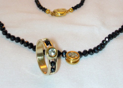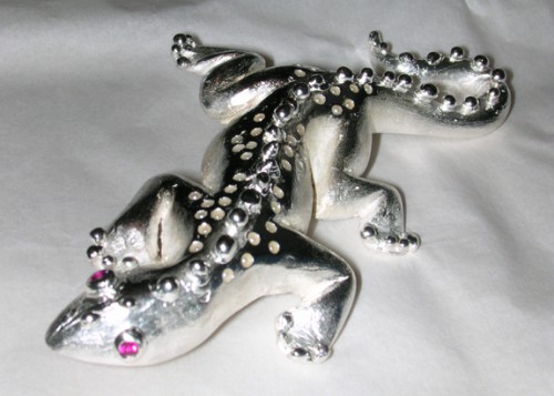 Ein Kreuz mit einem Safir (oder Diamanten) aus einem Verstorbenen, ein Brillenbügel aus Gold, eine Frauenskulptur aus Silber oder auch ein Armreif in dem im Inneren Asche eingefüllt ist… Das sind so die Stücke, die zwar ausser der Reihe, die hier versammelt sind.