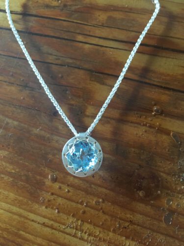 Die eingenähte Edelsteine sind eine Art Longseller in BrittasSchmiede. Die Steine können ziemlich frei gewählt werden, die Fassung kann auch aus Gold oder aus Platin hergestellt werden. Auch die Art der Aufhängung kann variieren. Am beliebtesten sind die Kettenanhänger, Aber es gibt sie auch als Ohrhänger oder als Set.
