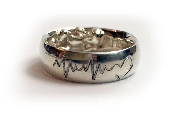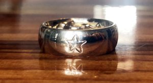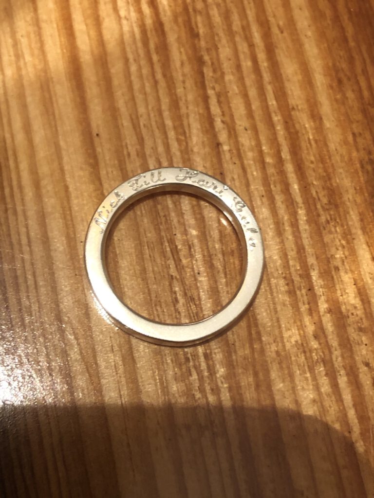 Handgravur. Flach seitlich auf einen Ring graviert.