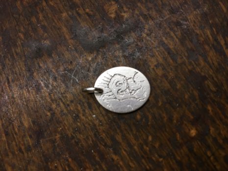 Diese beiden Anhänger sind für mich ein Beispiel wie unfassbar gut „unsere“ Graveurin Vorlagen umsetzen kann. Die Zeichnung von der Hand ist auf einem DinA 4 Blatt gezeichnet – aber der Anhänger ist keine 2cm hoch. Es handelt sich nicht um eine Verkleinerung, wie sie der Kopierer leisten würde. Denn eine solche Verkleinerung würde eher Grautöne ergeben. Die Gravur ist ein Nachempfinden der Zeichnung.