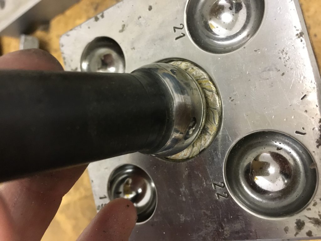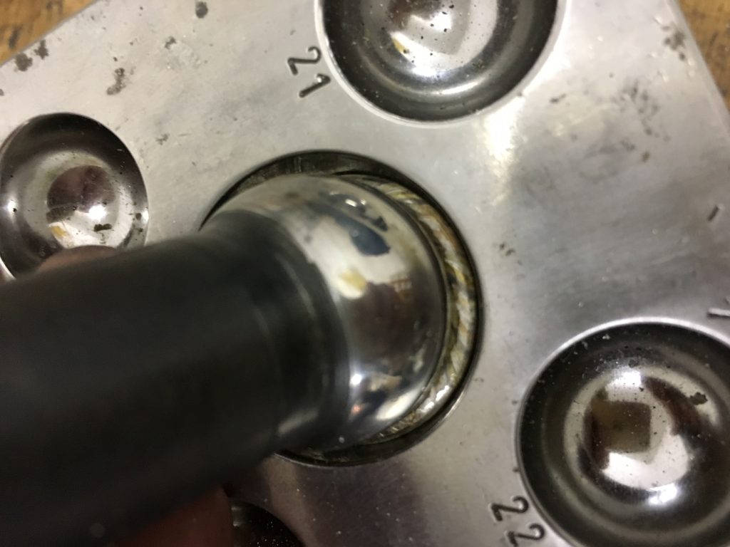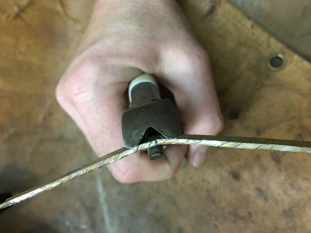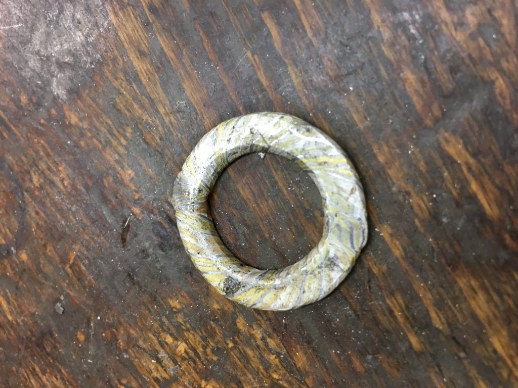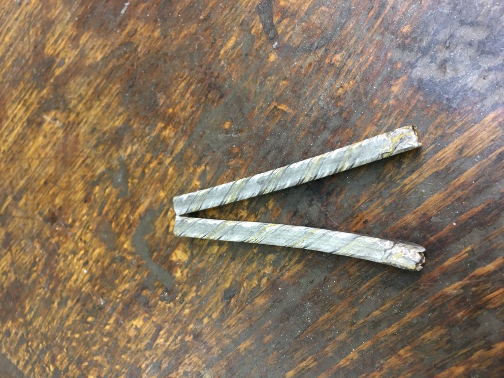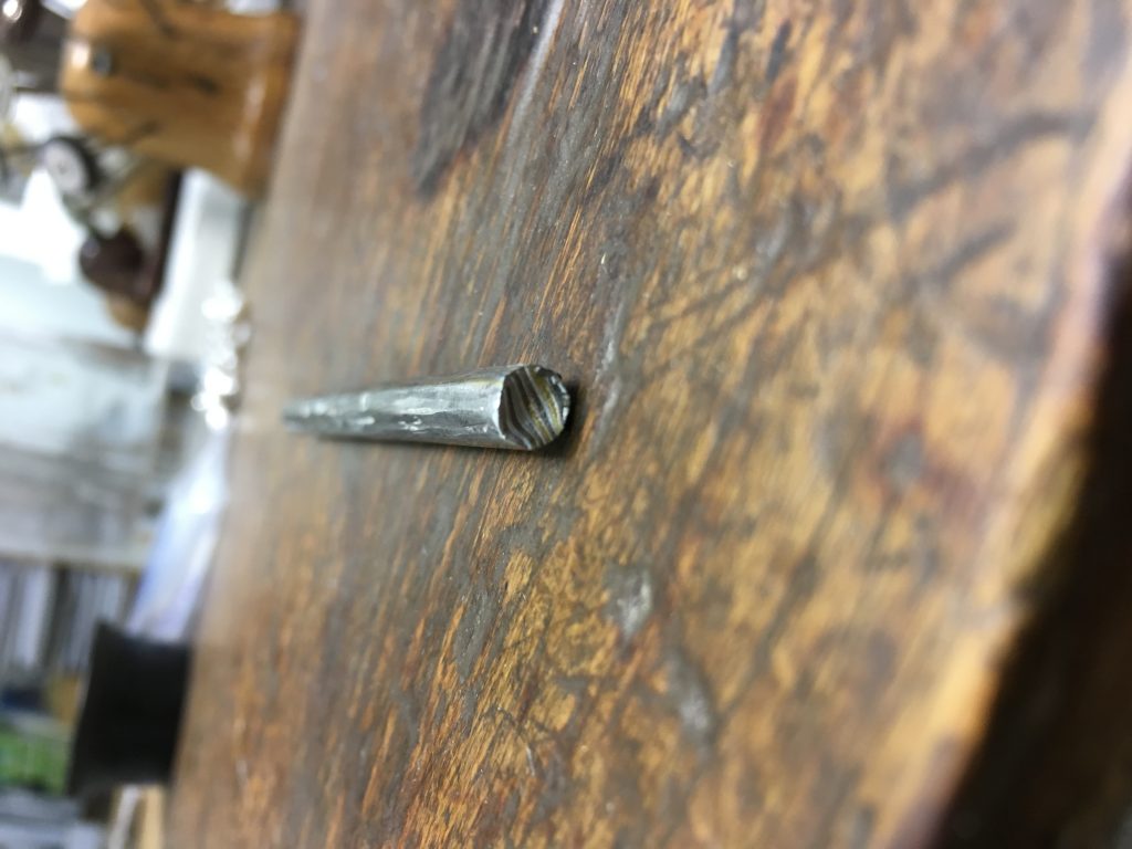 Die Lösung sieht so aus: Ich fertige in der Mokume Gane Technik einen „klassischen“ Trauring für die Braut und dazu, aus dem gleiche Material mit der gleichen Maserung den „Schlüssel zu ihrem Herzen“, das Schmuckstück, das der Mann nun immer bei sich trägt. Und auch dieser Schlüssel trägt natürlich die Gravur, die an einen Trauring gehört.