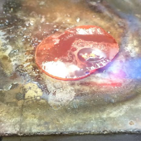 Einige Ring durften wir als Schmelzringe arbeiten. Hierbei wird, wie der Name schon sagt, das – oft mitgebrachte – Material zusammengeschmolzen. Je nachdem, ob der fertige Ring die typische Nuggetstruktur behalten soll, oder ob nicht, wird es dann weiter verarbeitet.