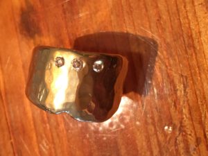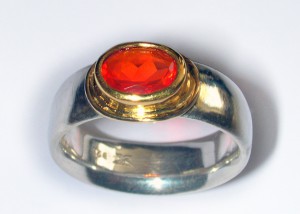 Hier seht ihr Mantelringe, sie werden hohl gearbeitet. Am Anfang sägt man das Material aus einem Stück Edelmetall-Blech und arbeitet daraus den Ring heraus. Das „Schnittmuster“ muss stimmen, sonst geht die ganze Arbeit von vorne los. Mantelringe sind voluminös und aufwändig zu arbeiten. Miriam hat einen gebaut und hier eine schöne und detaillierte Beschreibung erstellt.