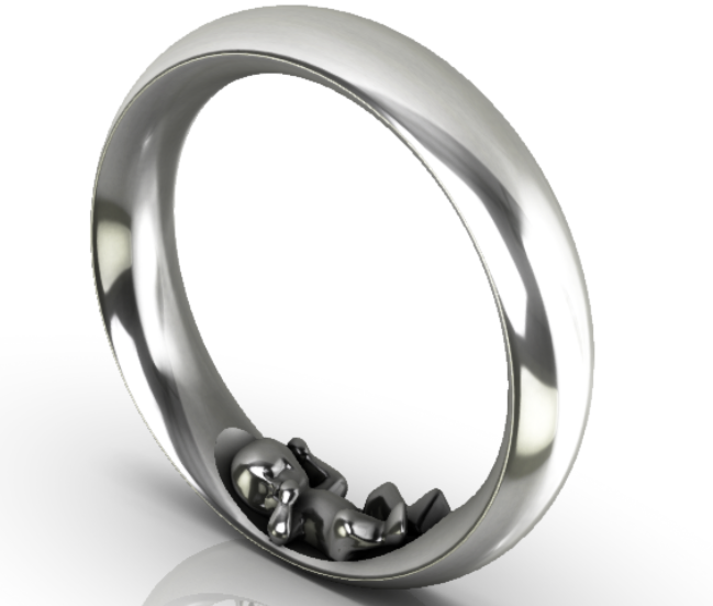 Doch das Tabu muss nicht gebrochen werden. Das Baby ist versteckt auf der Innenseite der Ringschiene. Das Geheimnis bleib gewahrt. Es kann gelüftet werden, na klar, aber nur willentlich. Wenn die Mutter davon erzählen möchte, sich als Trauende sichtbar machen möchte.