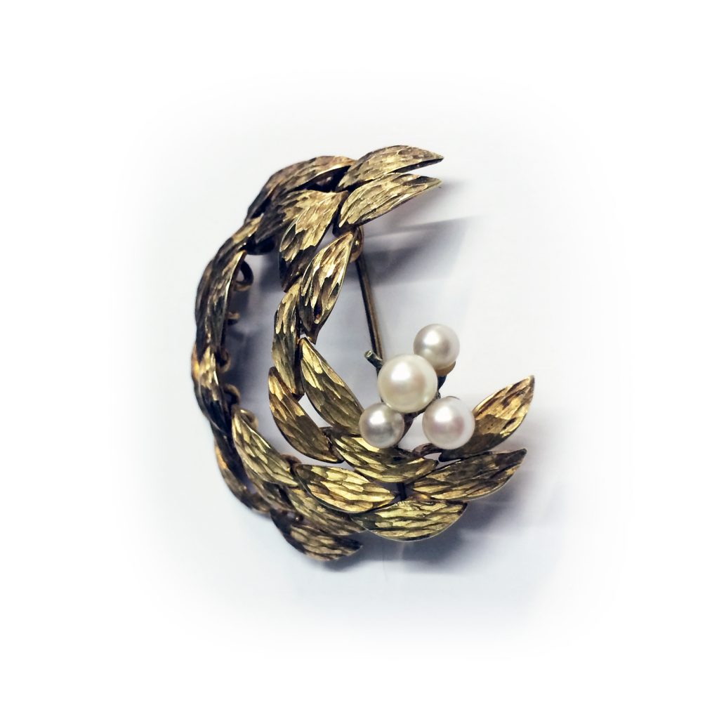 Brosche der Oma aus 585 Gelbgold mit Zuchtperlen